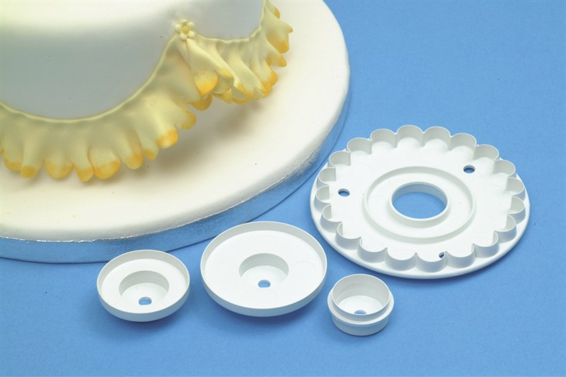 Превосходно подходит для создания декоративных украшений из сахарной мастики такие как: зонтик, воланы на торт, оборки для торта "Барби" и т.д.